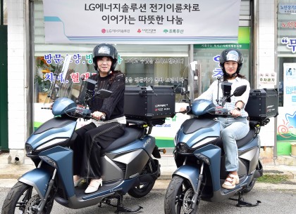 LG에너지솔루션 후원 전기이륜차, KR모터스의 ‘E-LUTION’으로 복지현장에 전달!  LG에너지솔루션이 취약계층 대상 봉사활동 기관에 ‘전기 이륜차’를 후원한다. LG에너지솔루션은 사랑의 열매, 초록우산과 함께 서울시 내 사회복지기관 및 단체, 사회적기업 등 56곳에 총 109대의 전기 이륜차를 후원한다고 밝혔다.후원 대상은 모두 지역 사회 내에서 돌봄 및 복지 서비스가 필요한 노인, 아동, 장애인 등을 지원하는 사업을 하는 곳이다. LG에너지솔루션은 이번 후원을 통해 이들 기관 및 단체 등이 더욱 원활하게 봉사 활동을 이어갈 수 있을 것으로 기대하고 있다. 사회복지기관 관계자는 “복지 현장은 주로 노후 저층 주거지, 좁은 골목길에 자리하고 있어 도보 및 차량으로 이동으로는 한계가 있었던 것이 사실”이라며 “이번 후원으로 긴급 돌봄, 도시락 배달, 대면 상담 등 필수 서비스 제공이 한층 수월해질 것”이라고 말했다.  앞서 5월 LG에너지솔루션은 초록우산과 함께 사회복지공동모금회에 전기이륜차 후원 관련 지정기탁사업을 신청했다. 이후 7,8월 두 달 간 전기이륜차 지원 대상을 모집했고, 이달 초부터 선정 대상에 전기 이륜차 보급을 시작했다.  LG에너지솔루션은 전기 이륜차 후원을 포함해 일정 기간 동안의 BSS(배터리교환서비스) 구독료 및 보험료를 무상으로 지원하고, 온라인 안전교육과 함께 헬멧 등 안전장비도 함께 제공할 계획이다.  LG에너지솔루션 관계자는 “좁은 골목, 가파른 언덕 때문에 발길이 닿기 어려웠던 곳까지 이번 전기 이륜차 후원으로 더 많은 복지서비스가 도착하길 바란다”며 “전기이륜차 한 대가 단순한 교통수단이 아닌 누군가의 일상과 희망을 이어주는 다리가 되길 기대한다”고 밝혔다.